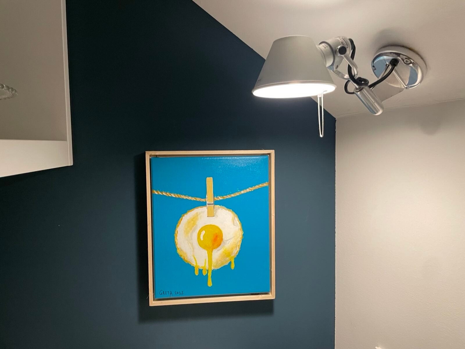 Gebakken ei aan de waslijn met knijper